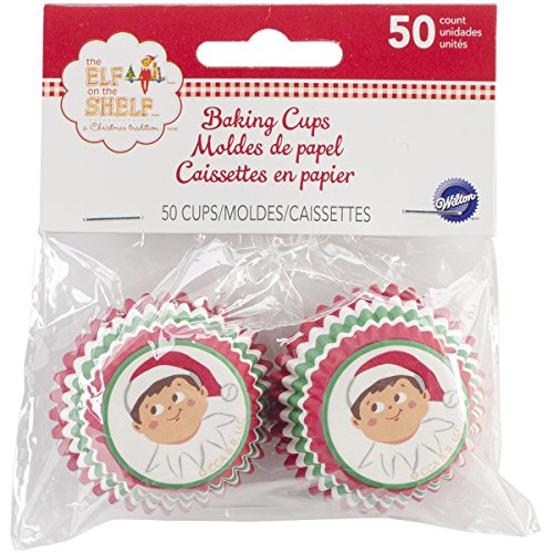 Mini paper baking cups feature a smiling scout elf and trimmed with festive Christmas red, white and green