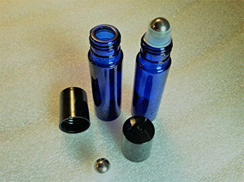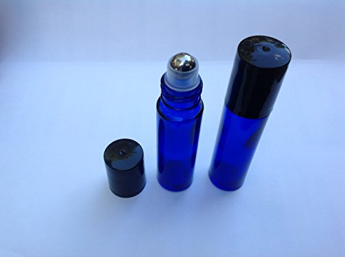 USA 144 - 10ml COBALT BLUE Glass Roll On THICK Bottles (144) with Stainless Steel Roller Balls - Refillable Aromatherapy Essential Oil Roll On (144)