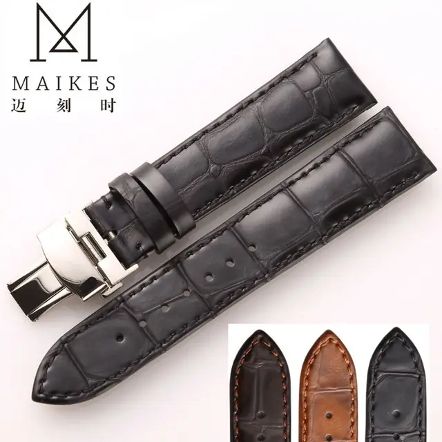 [해외]Maikes 블랙 정품 가죽 손목 22 미리메터 여성 및 남성 송아지 가죽 캐주얼 시계 액세서리 가죽 스트랩 butterfly 버클