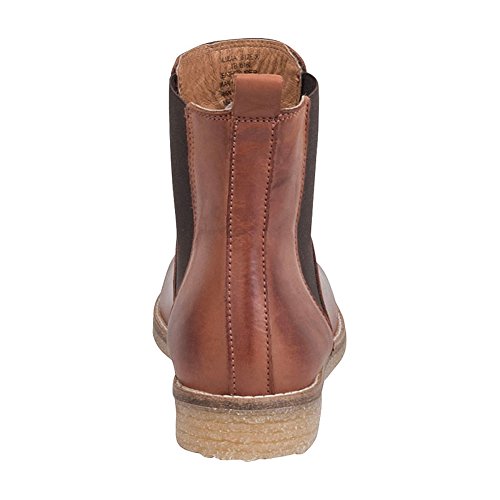 This season's more feminine take on the chelsea boot: Miz Mooz's "Lucia," updated with a sleeker silhouette, almond toe, and slimmer sole in cushioning crepe rubber; with extra-wide elastic side gussets and a leather pull tab for easy on/easy off wear. Made in Portugal.Feature