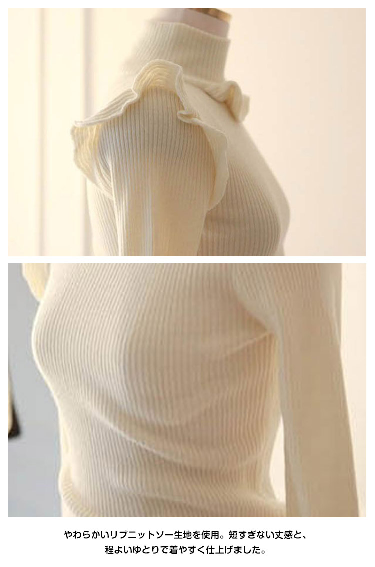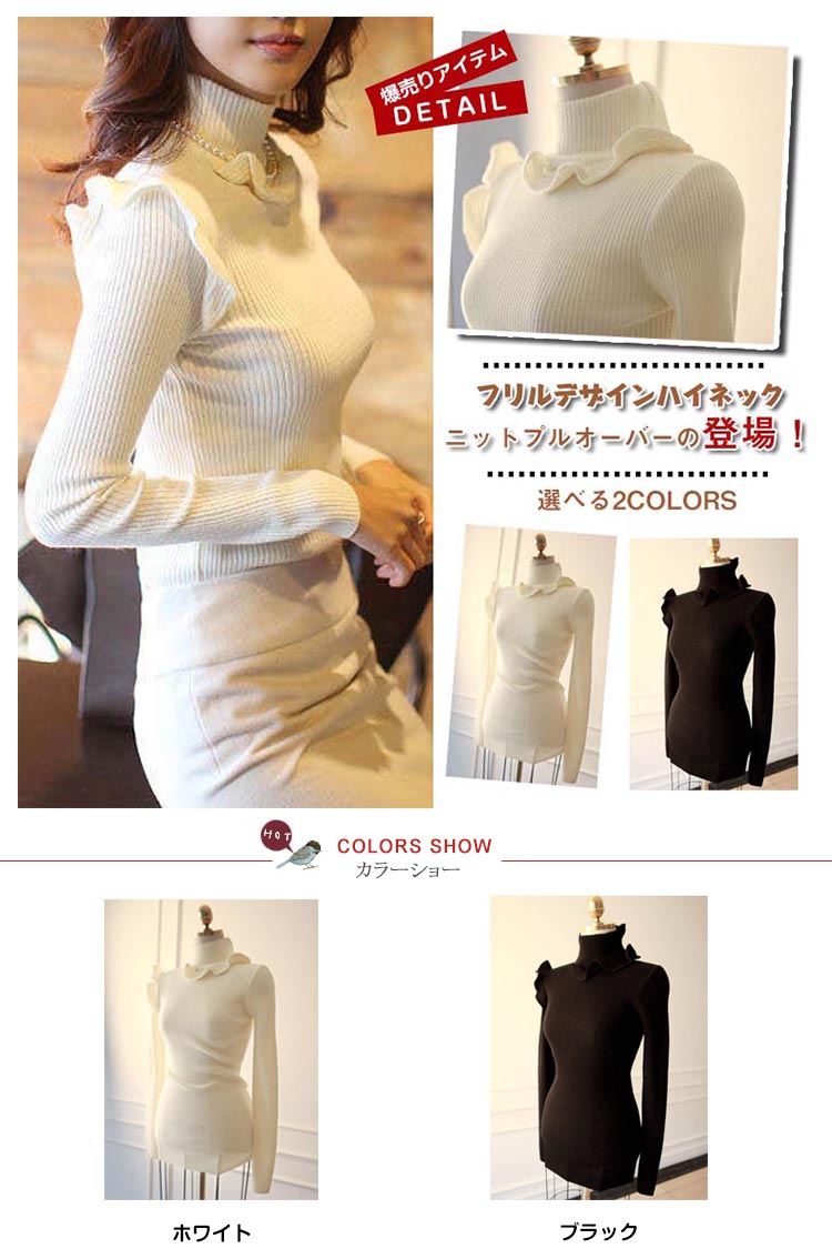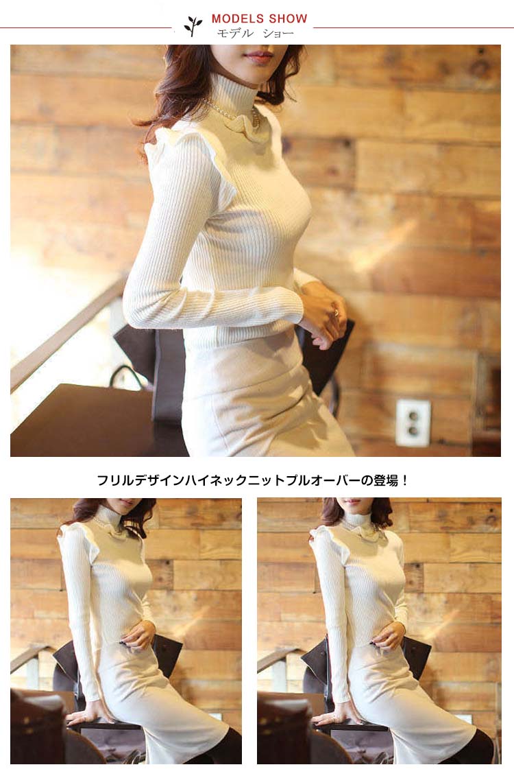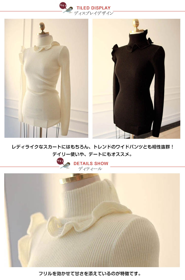 | フリルデザインハイネックニットプルオーバーの登場!甘いイメージのフリルも、リブニットでほどよく大人可愛い印象に。肌触りの良いソフトでもっちりとしたニット素材で伸縮性があり、程よく身体にフィット○レディライクなスカートにはもちろん、トレンドのワイドパンツとも相性抜群!デイリー使いや、デートにもオススメ。 | |