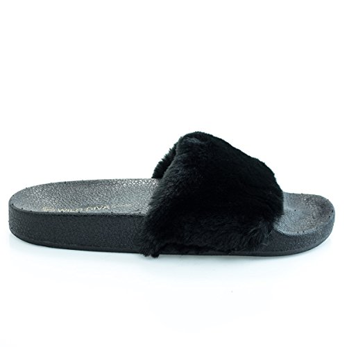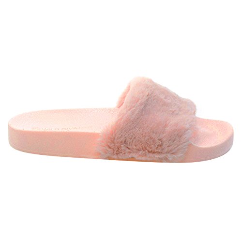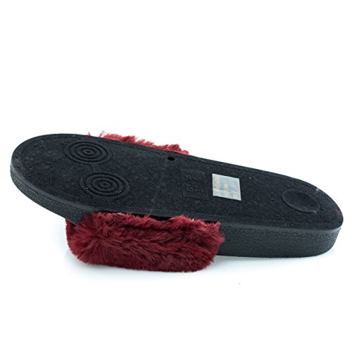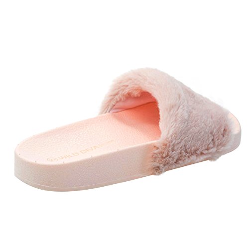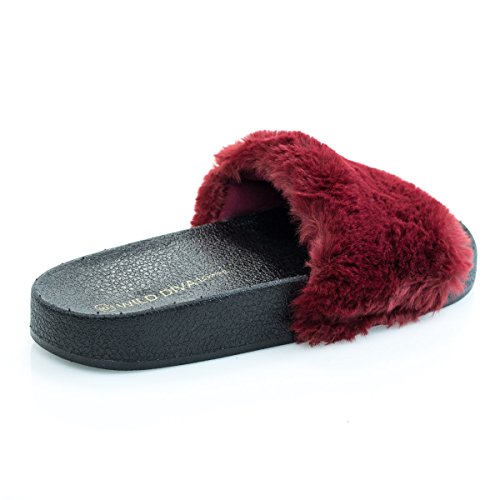 Binding : Apparel Product Description Name - Matty01 Brand: Wild Diva Colors Available: Pink, Burgundy (listed as dark red), black Features: These fluffy slide on sandals features a .75 inches rubber molded footbed, synthetic dyed fur and single band vamp. Occasion: Casual Shoe Type: Flats- Open Toe Shoe design: Flip Flops Inner Lining: synthetic Heel Height In Inches - 0.25 Heel design - Toe design - open-toe Platform Height In Inches - .75" Shaft Height In Inches - Circumference Opening - n/a Strap Type - Sole - manmade All Man Made Material. Please note that colors may be different slightly depended on your monitor's quality and calibration, we suggest you look at the photo in at least 3 monitors to be sure. 0