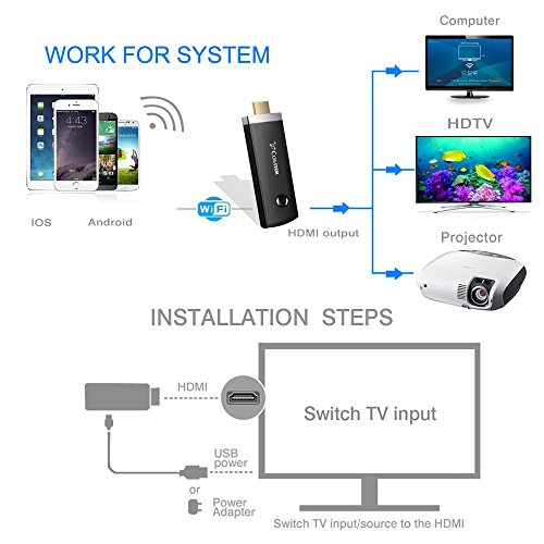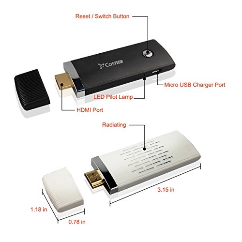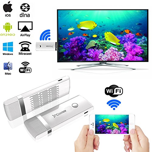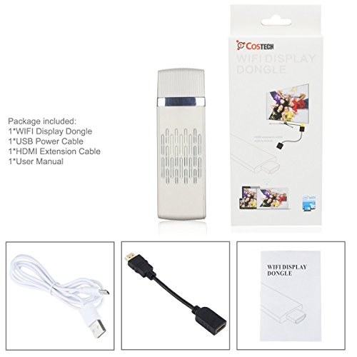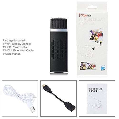 -. Binding : Wireless Phone Accessory -. Brand : Costech -. Feature : Can wirelessly cast smart phones, tablets, laptops, PCs' whole screen (Photos / videos / music / office file / Word / Excel document / PPT / PDF file / webpage ) to your big HDMI HDTV or LCD monitor with 1080 resolution by Wi-Fi. Can simultaneously transmitted videos, sound and picture for great enjoyment. Supports airplay mirroring display: Wirelessly mirror everything on your screen while surfing internet. / Support online movies / videos, online TV channels, online webcast/web browsing. Extreme 5.0 technology for smooth and fast high resolution gaming; extremely fast streaming without any delay or buffer for 1080P HD. / Support 3 modes: Miracast / DLNA / Airplay. Support Airplay mirroring, support IOS8 system, support, for iPad, for iPhone and Mac notebook. / Airplay: Support all IOS9 System. Such as, Smart Phones, for iPad, for Mac book. And Airplay can be connected to the router. / Support Online Upgrade. If dongle is on network mode, it will upgrade automatically when there is a new version on the dongle server. -. Label : Costech -. Manufacturer : Costech -. OperatingSystem : Linux -. PackageQuantity : 1 -. ProductGroup : Wireless -. ProductTypeName : WIRELESS_ACCESSORY -. Publisher : Costech -. Studio : Costech -. Title : HDMI WIFI Display Dongle,Costech [Update Version] 2.4G WiFi Wireless 1080P Hdmi Streaming Media Dongle Miracast Device For iPhone/iPad/Mac Book, Android/OS/iOS/Mac OS/Windows Devices