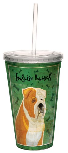 Tree-Free Greetings cc34019 Tan and White English Bulldog by John W. Golden Artful Traveler Double-Walled Cool Cup with Reusable Straw, 16-Ounce