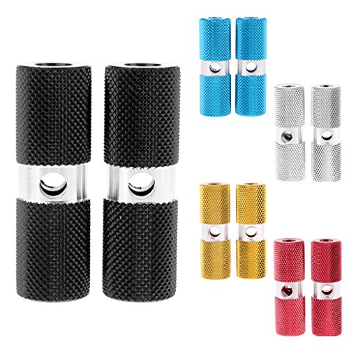 Description: - High strength aluminum alloy, oxidized surface. - Strongly-built, safe and high weight-bearing. - Lightweight and compact bicycle foot pegs suitable for front or rear axles. - Suitable for the types of 10mm 3/8 inch axis thread bicycles, exclude fast disassembly type hub axis. - Cylinder shape carved with non-slipping grooves. Specification: - Material: aluminium alloy - Length: 70mm/2.8inch - Outter Diameter: 23mm/0.9inch Package Includes: 2 Pieces Foot Pegs 0 |