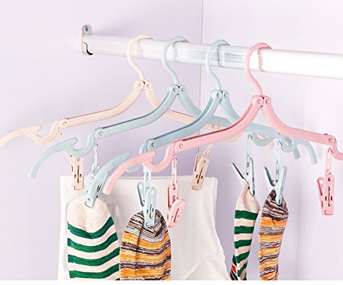 SUXCGE Hanger Pack of 4 / 8 with Clothespins Towel Clip Socks Clip Plastic Foldable Travel Home Camping Non-slip Clothes Shirts Sweaters Dress Hanger Hook Drying Rack From Blowing Away Lines Pack of 4