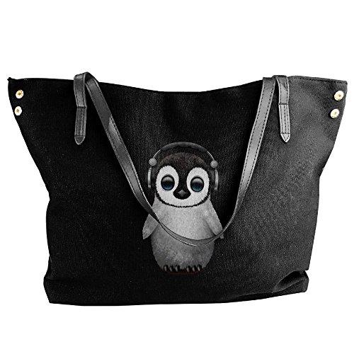 (GUCIPO LOCPC)/Accessories/Luggage, Bags Travel/DIRECT FROM USA/Cute Baby Penguin Dj Wearing Headphone Casual Girls Ladies Shoulder Bag Hobo Bag Black