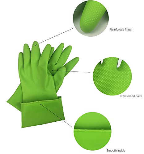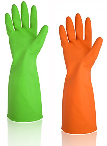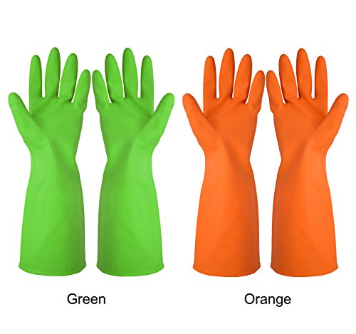 Stop choosing, just enjoying the service that Cleanbear providing. These household gloves are made from nitrile-butadiene rubber which is non-toxic, no smell, latex free, High Extensibility, tear proof. Extra long cuffs provide extended protection to forearms, to stop water from dripping onto you arms. Size 9, large enough to meet the needs of your family members.