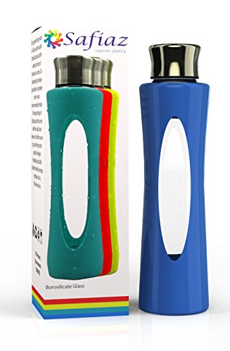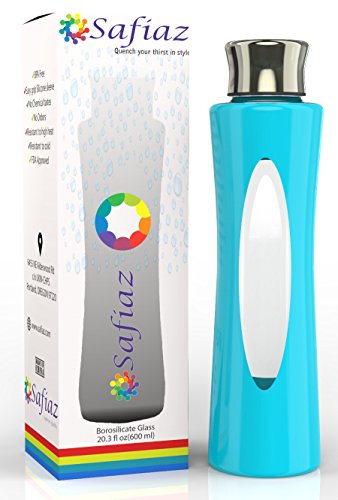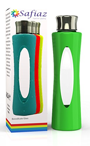 -. Feature : GET HEALTHY - Improve your health in style by enjoying your fresh tasting water in our water bottle, which is reusable, recyclable, Eco-friendly, FDA Approved and completely BPA, PVC, Phthalates and toxin free borosilicate glass bottle which is also completely free of chemical tastes and ordors. / SUPERIOR QUALITY - Safiaz, Glass Bottles, are 20 fl oz capacity super lightweight, high quality traditionally handmade elegant designs with stainless steel cap. The 100% food grade glass and silicone sleeve is non-slip and leak proof that has been enhanced for your comfort and luxurious experience. Perfect for your beverages. / FREE BONUS - Do you find water boring to drink? Why not try making a great tasting water drink from our amazing free "detox water recipes" eBook (instructions supplied in the box to obtain your free eBook). It is fun, quick and easy to make a thirst quenching and rehydrating drink while cleansing your body and mind. Simply pour the special drink in your reusable water bottles and enjoy. / EASY TO CLEAN, STORE AND USE FREE BONUS - The glass is super smooth, for easy care the silicone sleeve and bottle can easily be washed by hand or effortlessly put together in the dishwasher. Safiaz durable bottle is safe for fridge, freezer and microwave (simply remove the stainless cap before placing it in the microwave) / SATISFACTION GUARENTEED - Our borosilicate glass bottle is the best that you can find. Best of all for you peace of mind we offer you 100% satisfaction guarantee. Either you love Safiaz superior quality bottle or we give you full refund. No questions asked!