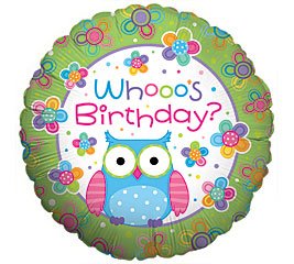 Whooos Birthday Colorful Owl Birthday Balloon 18" Mylar Balloon