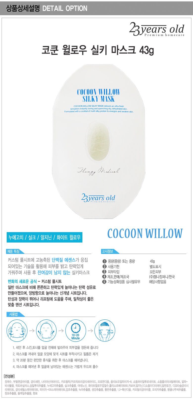 23YearsOld Cocoon Willow Silky Mask Pack 43g