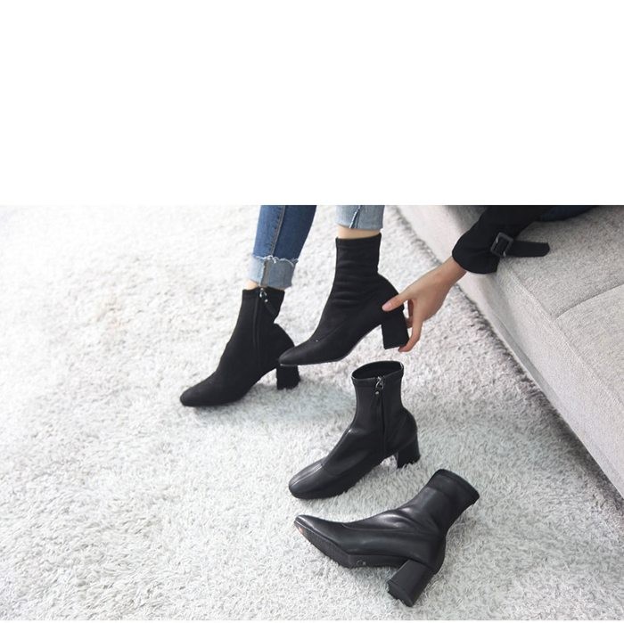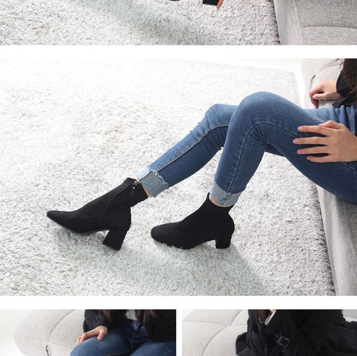 商品名:ストレッチブーツ レディース チャンキーヒール 太ヒール 2017 秋冬 ファッション 靴 婦人靴