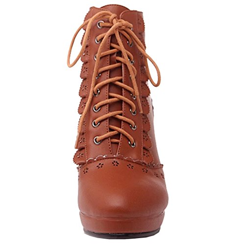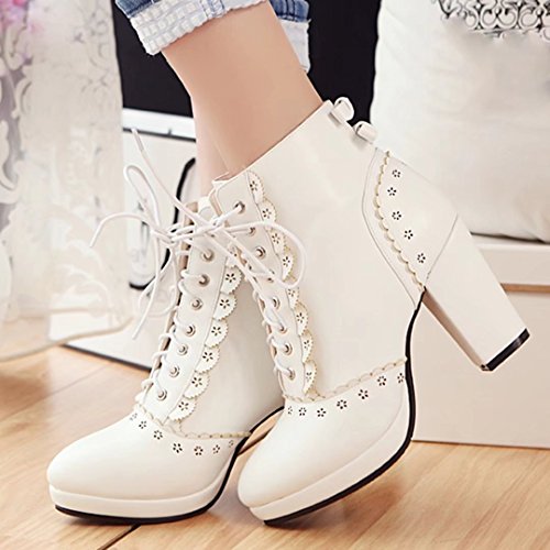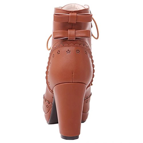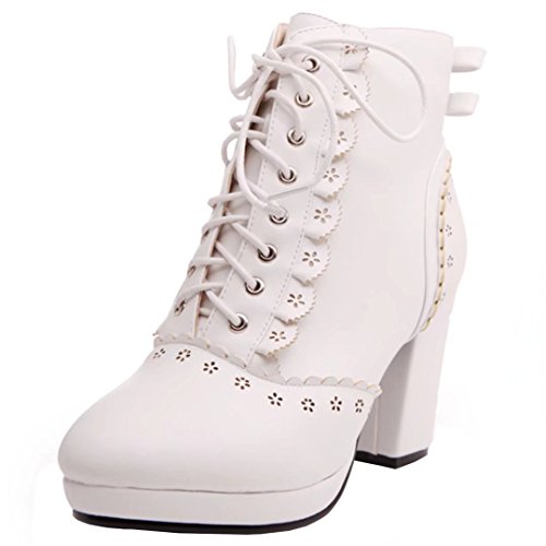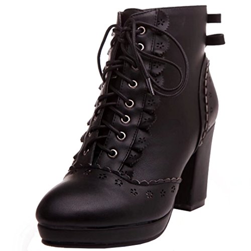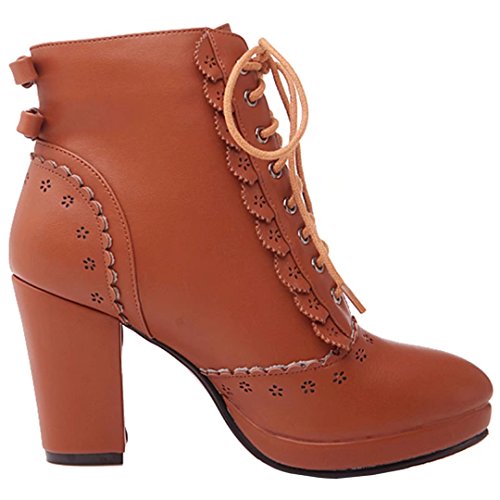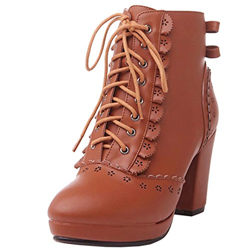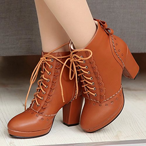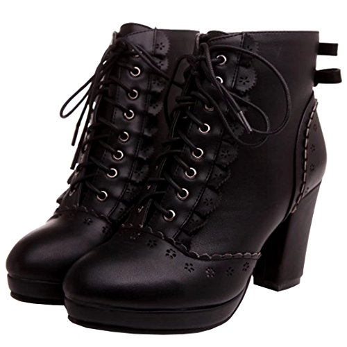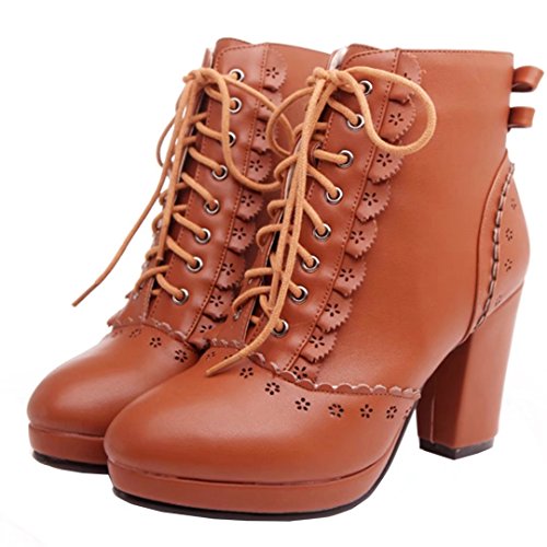 * Heel Height:8.5cm * Shaft: 11cm * Boots opening: 21cm * Platform Height:1.5cm * Material: PU * Inner Material: Suede * Sole Material:Rubber * Color: Black, Brown, White, Pink * Toe Type: Round Toe * Closure Type: Lace-up * Heel Type: Block Heel * The package will be delivered to you about 7-12 business days. * Please measure the sizes of your feet before you buy this item. If your foot is slightly wider or one of your toes is longer than usual, please choose the larger size. * Q1: What can I do if I have any problems? * A1: Please send email to tell us your problems first,we will reply you in 12 hours(except holiday) and try to find the best solutions,thanks for your trust! * Q2: What can I do if the products have problems? * A2: Please send us email with the problem products picture,which can help us to solve the problem in time! * AIYOUMEI commits to the shoes' design, craftsmanship have a unique study to the Excellent quality of products and timely courtesy of customer service experience, adhering to the customer is God's philosophy.Our product main conclud boots, military style, espadrilles, flat, lace-ups, loafers panties, High heels, plateau, casuals, dress shoes, oxfords and so on.If there are any problems, please feel free to contact us at any time, we are always here to help you. 0 |