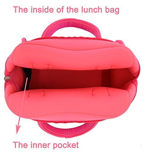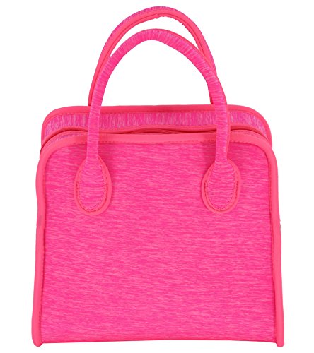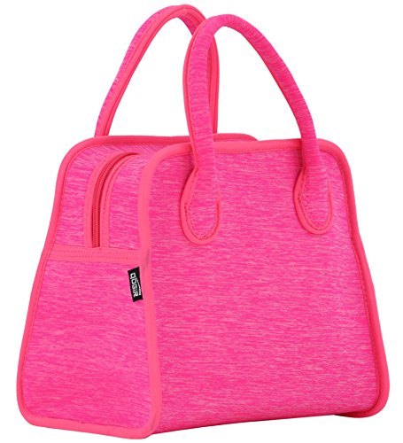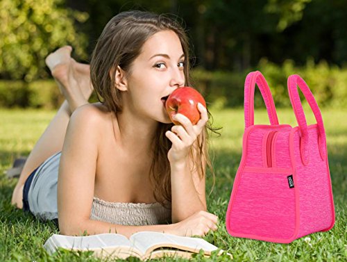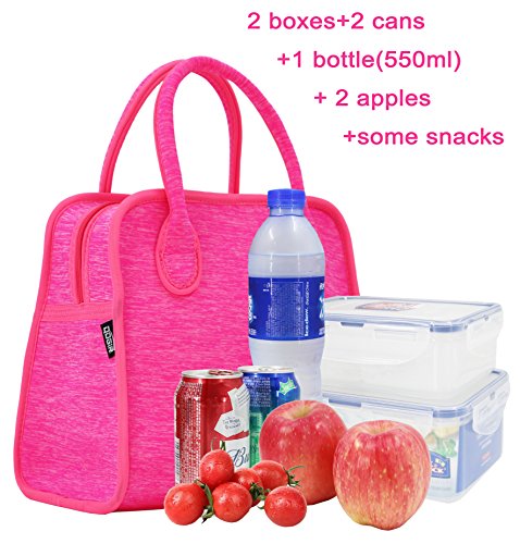 Neoprene Lunch Bag Tote by QOGiR - Large 10.5" x 14" x 6.5" inch(Fits Containers up to 10"Lx9”Hx6"W) - Keeping Food Cold (Warm) Appr 4 Hours~Pink