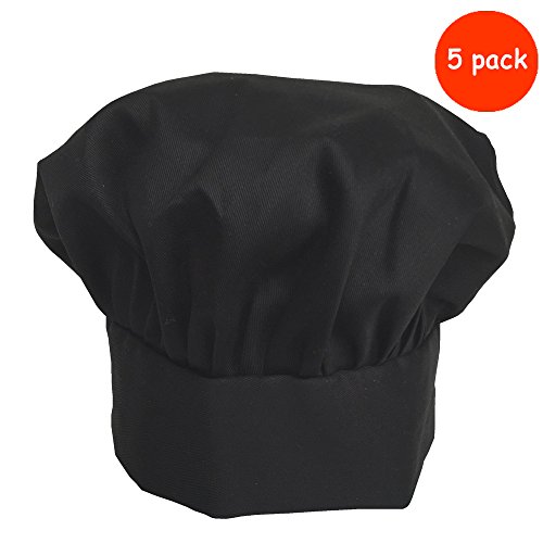 Wtape Size Adjustable Professional Kitchen Cooking Chef Hat, Black Chef Hats for Chef 5 Pack