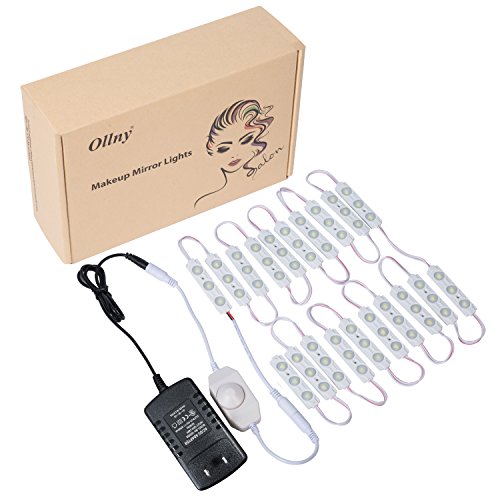 LED Vanity Mirror Lights Kit Ollny Hollywood Style Dimmable Lighting Fixture Strip Stick on for Makeup Vanity Table Set in Dressing Room 10ft 60 Led Bulbs Plug in 6000K Daylight