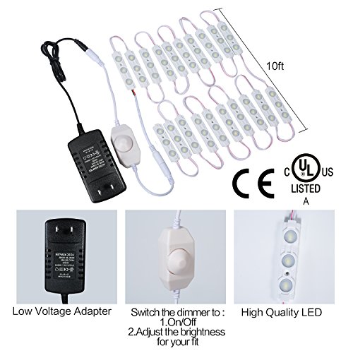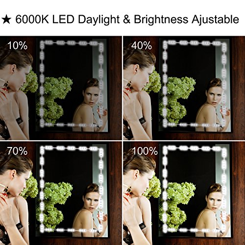 Dimmer Brightness- 10ft vanity mirror lights kit in full length ( Not include the adapter and dimmer), switch the dimmer to adjust the brightness for your need at any time, and the extra flexible light strip can be cut for your needs freely to keep your vanity makeup set beautiful and neat.