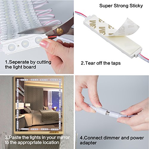 Safe to Touch & Waterproof - Operating with 12V low Voltage, your makeup mirror lights are safe to touch and will not damage you skin. IP65 Waterproof makes it well-suited for using in bathroom.