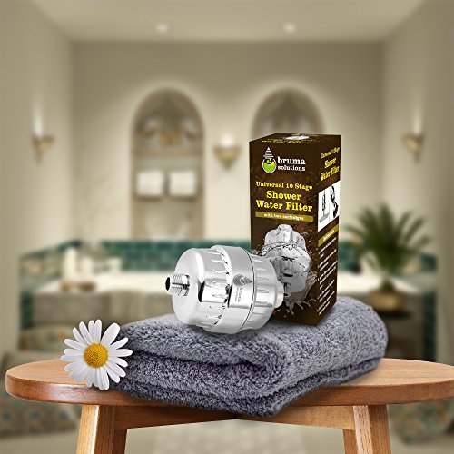 Bruma Solutions-Universal Multi Stage Shower Filter Kit w/ 2 replaceable cartridges removes chlorine fluoride odors impurities & hard water safe for baby shower prevents itchy skin & hair dryness