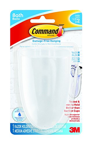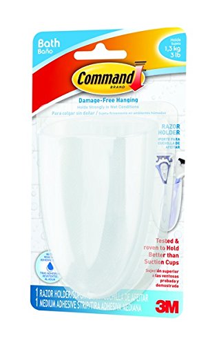Studio : 3M Corp Publisher : 3M Corp Binding : Tools Home Improvement Product Description Command Toothbrush/Razor Holder allows you to keep things within easy reach. Perfect in the shower to safely store razors or ideal next to the sink to keep toothbrushes off the counter and dry. The holder sticks to many surfaces, including glass, mirror, tile, fiberglass, wood and painted surfaces. It is easy to apply and comes off leaving no holes, marks, sticky residue or stains. Repositioning is easy with assorted water resistant refill strips. Great for bathroom organization including guest and kids' bathrooms, renters and dorm life. 0