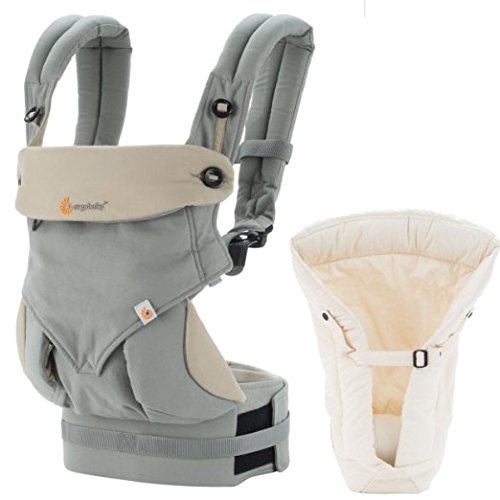 -. Title : Ergobaby Bundle - 2 Items: Grey Four Position 360 Baby Carrier and Natural Heart2Heart Infant Insert