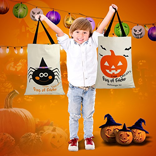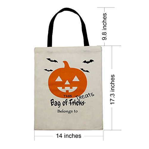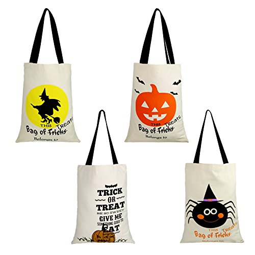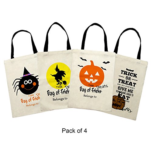 Halloween Bags 14 x 19 Inches, Washable & Durable Canvas Halloween trick or treat Bags, Halloween Gift Bags for kids, Candy, Presents and Halloween Party by LETMY (4 Pack)