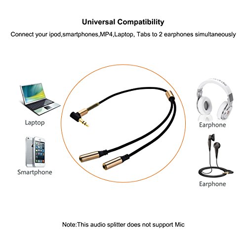 Connect your MP3 player, smartphone, tablet, computer etc, to two headphones or speakers, ideal for sharing cool music or movies, It is a great solution to share cool music, movies and games with your families and friends.