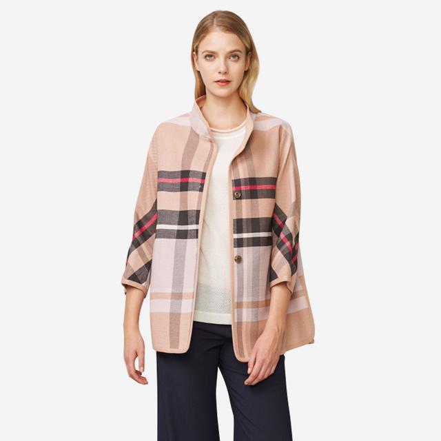 자수 디테일이 살았는 체크 패턴으로 산뜻하며 여성스러움을 돋보여주는 스냅형 자켓입니다.