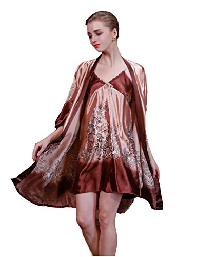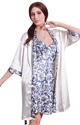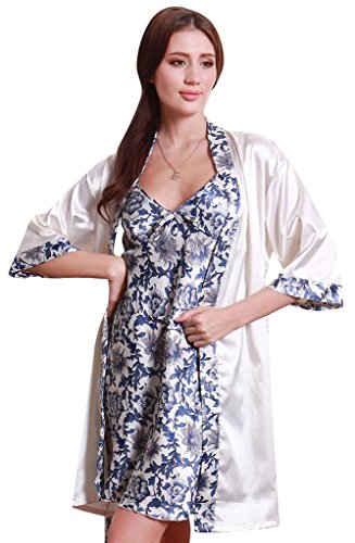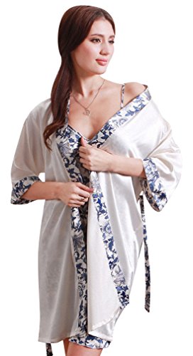 Barry Womens Luxurious Silky Dress and Bath Pajama Robe Set - White M