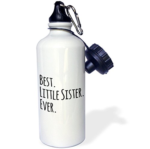 3dRose wb_151538_1 Best Little Sister Ever-Gifts for Younger and Youngest Siblings-Black Text Sports Water Bottle, 21 oz, White