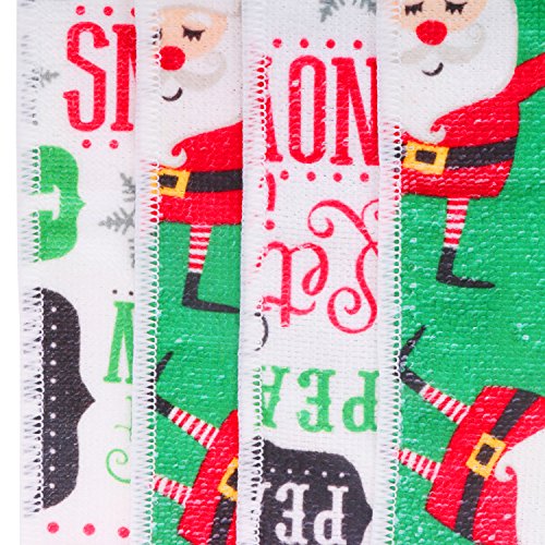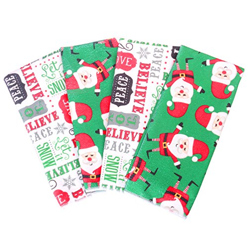 Kleanner Microfiber Christmas Kitchen Dish Towel, Absorbent And Fast Dry Holiday Dish Cloth, Colorful Font Art And Cute Santa Two Pattern, 15 By 24 Inch,Set Of 4