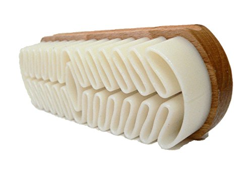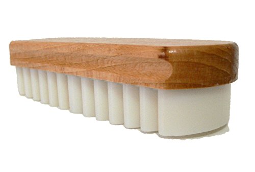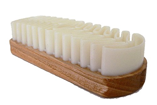 Product Description The Classic Shoe Suede Stain Remover - a must have shoe care tool, this brush will deliver the best in napped leather (suede or nubuck leathers) cleaning. Very traditional designed, with hard wood varnished handle and very soft artificial rubber filler, this shoe brush will successfully remove and eliminate the majority of non-greasy dry stains from your leathers. Superior quality fabrication footwear and garments cleaning brush - manufactured with high quality elements and machine assembled this type of brush is a key tool for any suede or nubuck item's owner. The soft rubber has the properties to gentle massage the napped leather without harming it but in the same time will force the dry stains to separate from leather. The type of dry stains that brush will perform well are: dust accumulation, dry mud, winter slush, road grim, safety salt marks, white salt marks, etc.. Great Addition Next to Any Suede Footwear Purchases - this shoe leather cleaning brush should be considered as an immediate addition to any suede boots or shoes owners. In order to maintain the good and original look of your footwear anyone must consider owning the necessary tools for shoe care. The key for a good shoe care service is: cleaning, conditioning and protection and we strongly recommend that at least one of these three key elements should be part of anyone's shoe care sets or kits. Product is proudly offered by Valentino Garemi - your Shoe Care leather Care specialist. Brush size: L - 4 3/4", W - 1 5/8", H - 1 1/4" 0