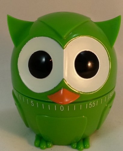 -. Feature : Adorable wide eyed Green owl kitchen timer doubles as counter top décor / Timer goes up to 60 minutes / Steel mechanism with plastic exterior / Measures 2.5 x 4.25 x 2.5-inch