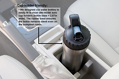 FUNCTIONAL DESIGN - Our bottle was created with comfort, functionality, utility and durability in mind. Tapered construction offers a comfortable grip for large and small hands. Non-Slip removable rubber base provides a stable footing wherever you set your bottle, it also adds more protection and durability against drops and falls. Fits in most all cup holders. Wide mouth makes cleaning and adding ice cubes easy! Our lid also comes apart for easy, no fuss cleaning.