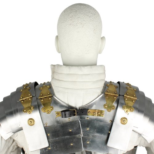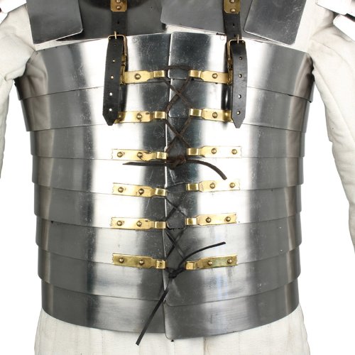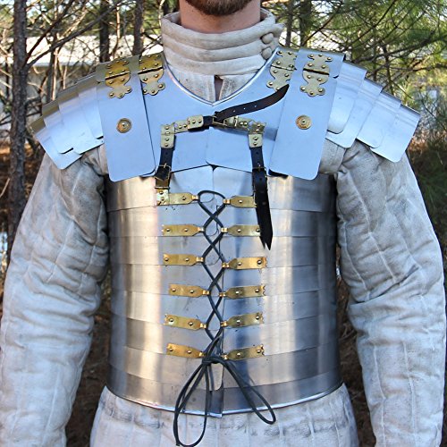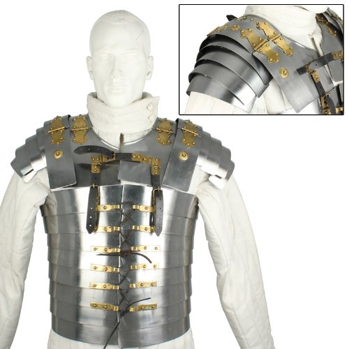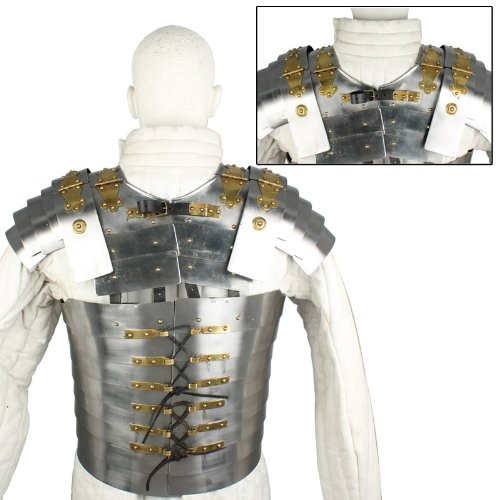 Studio : Armory Replicas Publisher : Armory Replicas Binding : Misc. Product Description The Lorica Segmentata is a type of segmented armor exclusively used during the Roman Empire. This armor consists of broad steel strips/plates, fastened to thick leather straps, which are arranged horizontally on the body, overlapping downwards. The fitments that close the various plate sections together made of polished brass fittings, adding a beautiful touch of class to this Cuirass. The cuirass is tied shut front and back with leather thongs. The upper body and shoulders are protected by additional shoulder guards. The shoulder guard (Pauldron) is well decorated with polished brass hinges and rivets. This superb replica is being hand-crafted from 18 gauge mild steel which offers a polish finish. It is quite flexible and allows plenty of freedom of movement. Our closely copied Lorica Segmentata can be worn to a costume party but is also solid enough for combat re-enactments. They are being widely used in movies as well. This historical piece is a must for any Armor collector or enthusiasts. 0