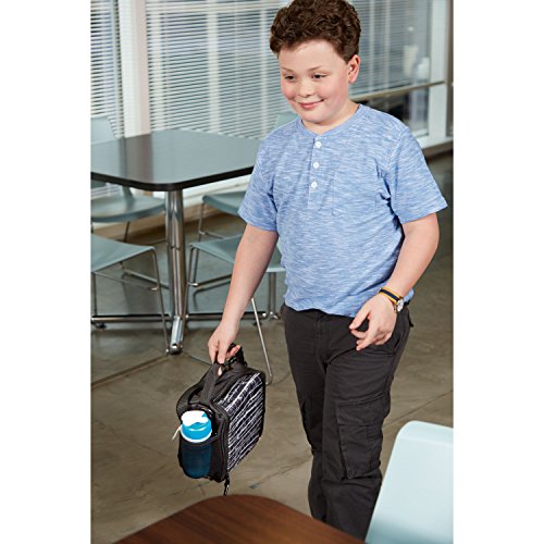 Take a healthy lunch anywhere in style with this medium black etch Rubbermaid LunchBlox Lunch Bag. Specifically designed to work with Rubbermaid LunchBlox containers, it efficiently packs multiple containers along with a frozen Blue Ice pack to keep contents fresher and more flavorful longer. A bottle holder and utensil/accessory compartment keep everything you need for a delicious lunch handy. This lightweight bag features a convenient comfort-grip handle and removable shoulder strap. LunchBlox containers, ice packs, water bottle, and utensils not included. Measures 5.4" L x 8.8" W x 8.9" H; 7.2 ounces.