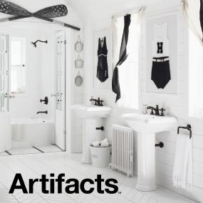 And just as classic sees a resurgence in kitchen and bath trends, the introduction of the Artifacts collection couldn't be more timely. Its Edwardian roots play well in traditional and transitional baths, even in modern spaces, where its timeless form offers an historic juxtaposition for a more eclectic aesthetic. Fifteen accessories, including a tumbler, soap dispenser, and toilet paper carriage make it easy to create a complete, cohesive look.