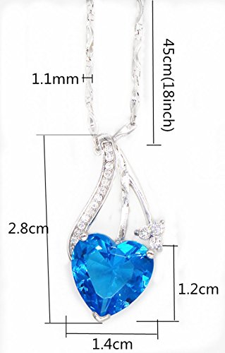 -. Feature : Chain Size: 45cm/18inch, heart of ocean: 2.8*1.4cm/1.1*0.55inch / High polish finish ,No includes any allergic materials, be safe to wear / Materials: 92.5% Sterling Silver, 7.5% Copper, Swarovski Elements Blue Crystal (overlay 14 white gold on the surface ) / Excellent Luster, Unimpeachable Rust, Corruption Resistance, Make you more shining and charming / Comes with a Jewelry Box and Soft Silver Cleaning Cloth, An excellent present for women or teen girls