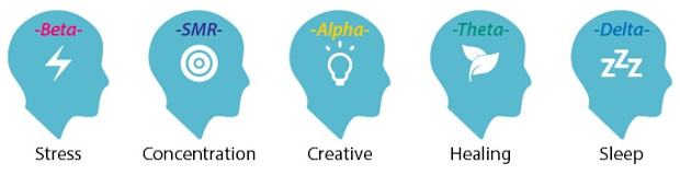 Inducing Alpha brain waves can help you reduce stress while opening your mental facilities. Inducing SMR brain waves can provide an assured alertness to attack an action with confidence. Inducing a Theta brain waves can induce a deep meditative state to provide inspiration. Inducing Delta brain waves can provide deep mental rest to provide bodily and cognitive regeneration.