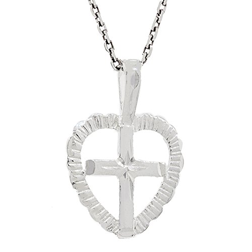 -. Title : Sterling Silver Cross In Heart Pendant Necklace