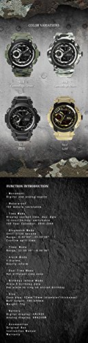[Specification] Time Mode -Display current time, day, date -12-hour/24-hour switchable -100 Year Calendar: 2000-2099 Stopwatch Mode -Count time -Unit: 1/100 second -Range: 0:00’00”--23:59’59” -Confirm split time Timer Mode -Range: 23:59’59”--0:00’00” Alarm Mode -5 Alarms -Hourly inform Dual Time Mode -Set different time zone Birthday Inform Mode -Store 8 birthday data -Set alarm to ring on stored birthday 100 Meters Waterproof