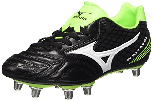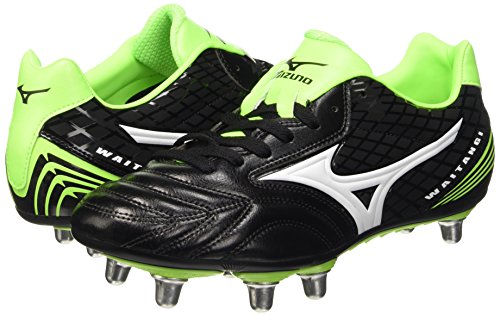 Studio : Mizuno Publisher : Mizuno Binding : Apparel Product Description Mizuno Waitangi CL Rugby Boot < /hr> Made from Primeskin leather, the Mizuno Waitangi Rugby boot offers an enhanced sense of touch against your foot and a secure and comfortable fit thanks to the stitched lines of the upper. The 8 studs are strategically placed to reduce pressure and can be removed and replaced as much as you please. The Mizuno Waitangi Rugby Boot uses a soft PrimeLeather material in its upper which offers a comfortable, exceptional durability and secure fit to the top of the foot. There is also a removable moulded sock liner included in the Waitangi to offer extra cushioning and secure fit by moulding to your foot. The Waitangi adds Diagonal flex grooves and a dual density insole board for enhanced forefoot flexibility and traction in scrum movements. Exceptional weight benefits are offered with the Graded Pebax Sole Plate. The sole is made up of 6 front and 2 back soles which are removable and strategically placed to reduce pressure to the foot. 0