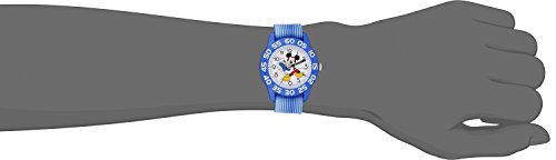 Round watch with numbered bezel with white dial featuring Mickey Mouse graphic and time teacher hour and minute hands