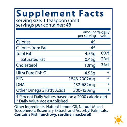Ultra Pure Fish Oil 2600 in liquid form provides an extremely high concentration of EPA and DHA for people who find it difficult to take several softgels per day or swallow large pills. Ultra Pure Fish Oil 2600 provides protection and maintenance of normal function, fluidity and health of cell membranes. Fish oil contains the essential fats EPA and DHA. These fats help maintain and support soft tissue and connective tissue. Fish oil helps promote cartilage and joint function and relieves mild mood changes and cramps associated with the menstrual cycle. Fish oil helps maintain platelet aggregation levels that are already in the normal range. Large doses of fish oil maintain healthy neural and cardiovascular function. Ultra Pure Fish Oil has a pleasant natural lemon flavor. Vital Nutrients mission is to manufacture superior quality nutraceuticals that exceed both industry and government standards and provide clinically effective results. They provide over 200 science-based and clinically effective products. They have a comprehensive quality assurance program to ensure that purity and potency is consistently met on every product that they manufacture. Vital Nutrients uses independent U.S. ethical laboratories to test all raw materials and finished products. Each raw material is tested, regardless of origin, for purity and potency. All finished products are tested through a real time stability protocol for expiration date validation. They are an FDA Inspected facility that exceeds FDA cGMPs, and a member of the NPA.