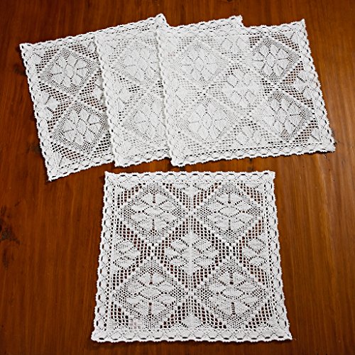 -. Feature : Attractive Crochet Stars design will add a fresh touch to any gathering. / Hand Made Crochet. set of 4 Square place Mats / Available in White and Beige color options. 16" Square . 12*18 Place mats 14*34 and 14*54 Table Runners / 100% Cotton / Machine Washable, Imported.
