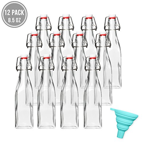 - EXTRA-STRONG SEAL - The Flip Cap tops are made with sturdy steel and thick rubber gaskets to provide a super strong, leak proof seal, which helps preserve your homemade beverages, carbonation, and fermentation. 8.5 oz clear square bottles.