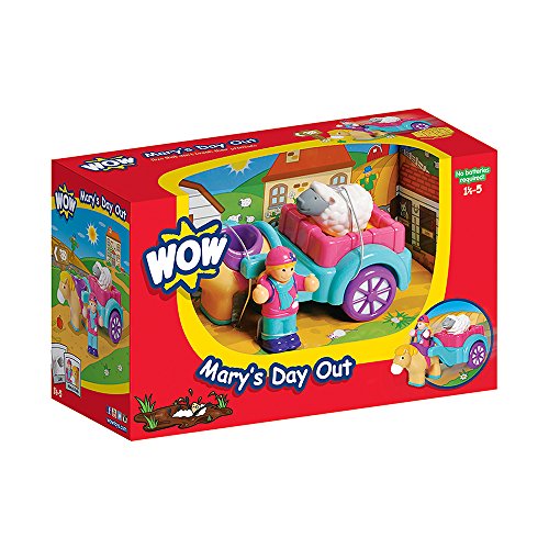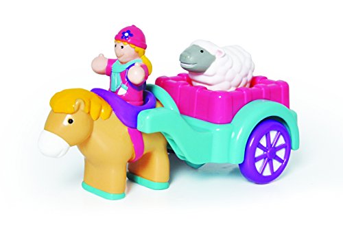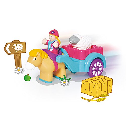 Push along horse and cart with realistic "clippety-clop" sound. Horse can also be detached from the cart and ridden by figure. Includes horse, cart, farm-girl figure, and lamb. WOW Toys is an award-winning brand of pre-school toys featuring multi-piece play sets with distinguishing vehicles and characters that are durably constructed to stand the test of time. Each character provides young children (ages 12 months to 5 years) with a role-play experience that extends the imagination and keeps developing minds active. Bright colors, exciting sounds, and magical, motorized features and functions are part of a thoughtful and careful design, ensuring a loveable line of toys that will be cherished by children for years to come. Children can mix and match the range of figures and play sets to build fun worlds, making WOW Toys highly collectible. The toys are designed to work together, and all the figures can be used with any play set. WOW Toys meet all global safety standards. They use child-safe paint, contain no small parts or PVC, and are cadmium, phthalate and PAH free. Motorized features and functions are 100% battery-free and built to last. WOW Toys' dedication to safety and extended play value mean the brand is trusted by parents the world over.Feature