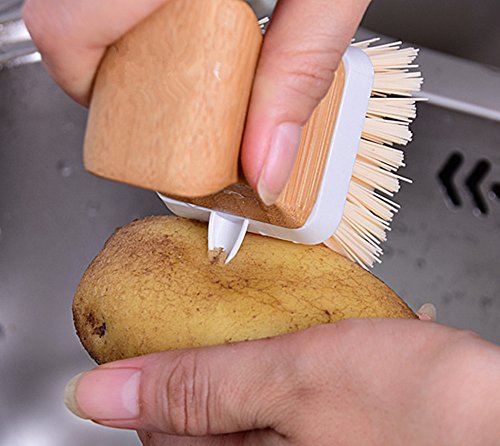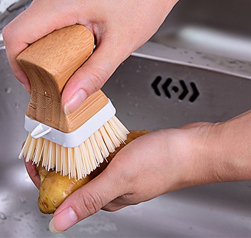 Huibot Vegetable and Fruit Brush Scraper Tip Natural Bamboo Dish scrubber