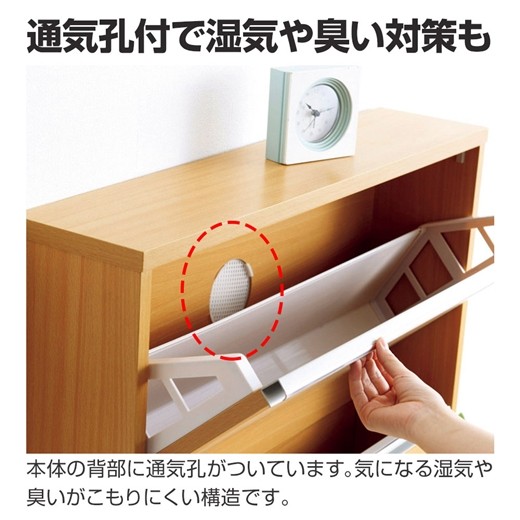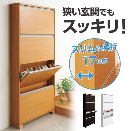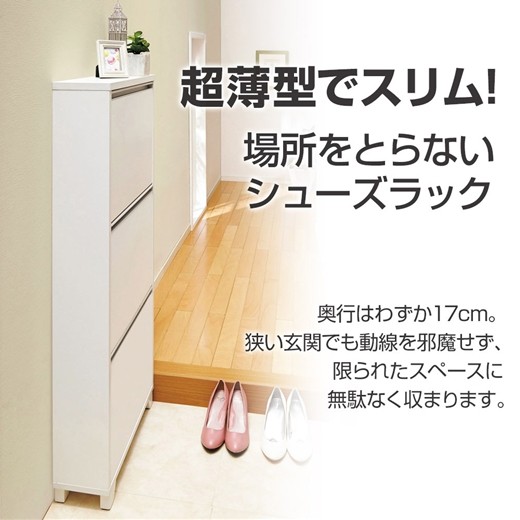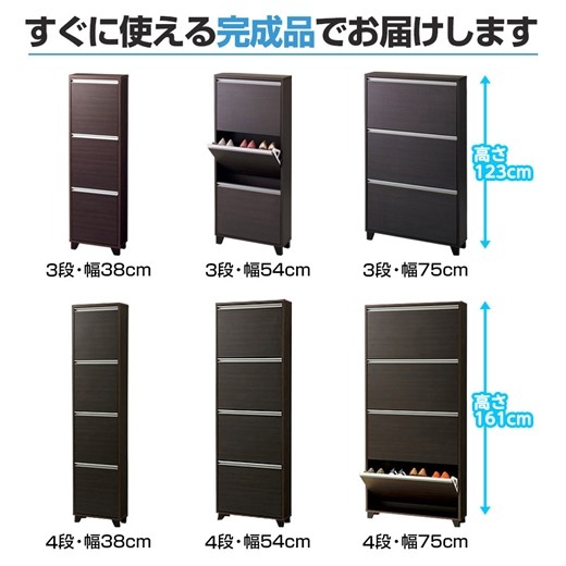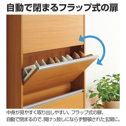 【商品名】薄型フラップ扉シューズラック/下駄箱 【4段・幅54cm ホワイト】 転倒防止器具付き