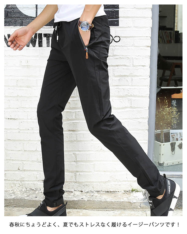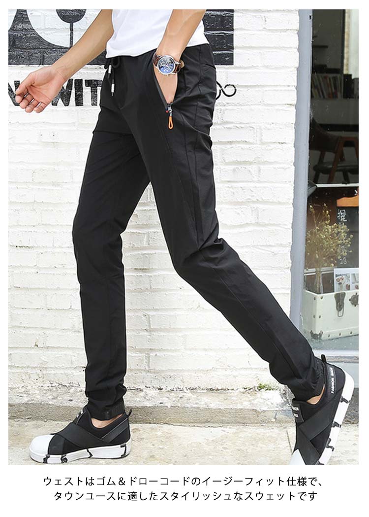| ベーシックシルエットのメンズロングパンツ★ウェストはゴム&ドローコードのイージーフィット仕様で、タウンユースに適したスタイリッシュなスウェットですフィットネスパンツやダンスでの着用もクール♪ | |
